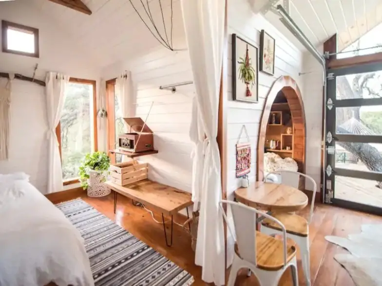 Georgetown, una de las mejores ciudades navideñas de Texas, cobra vida cada Navidad en su hermosa plaza que está decorada para la temporada. Hay muchas exhibiciones de luces navideñas aquí, así como servicios de velas de Nochebuena, representaciones teatrales, apariciones de Papá Noel y lotes de árboles de Navidad en vivo durante la mayoría de los años. Cuando visite Georgetown en Navidad, puede quedarse en esta casa de huéspedes con capacidad para cuatro personas que se encuentra en una propiedad de 10 acres. Está a solo un par de millas del centro de Georgetown y cuenta con una cocina totalmente equipada, electrodomésticos grandes, Wi-Fi y televisión por cable. Sin embargo, la casa no es a prueba de niños, por lo que es mejor para familias con niños mayores.