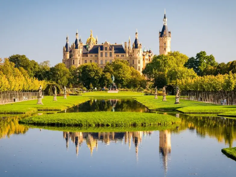 Con un apodo como "Versalles del Norte", puede esperar que el Castillo de Schwerin sea opulento. Construida completamente en una pequeña isla, esta obra maestra arquitectónica alberga 653 habitaciones. Terminado en 1857, el castillo fue una vez un colegio para maestros de jardín de infantes, pero ahora sirve como edificio gubernamental para el parlamento estatal de Mecklenburg-Vorpommern. Su arquitectura historicista romántica es una de las más bellas de toda Alemania, adornada con una colección de torres y torres ornamentadas.