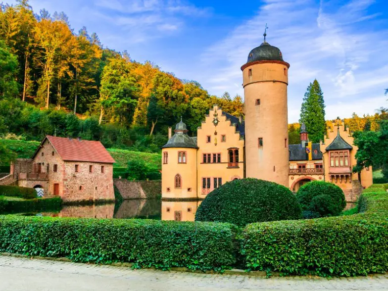 El castillo de Mespelbrunn es una joya escondida, ubicada dentro del bosque Spessart entre Frankfurt y Würzburg. Comenzó como una casa sencilla construida sobre el agua por un caballero de principios del siglo XV, pero ahora es de propiedad privada y la familia abre sus puertas a los visitantes durante todo el año. El castillo con foso de finales de la Edad Media y principios del Renacimiento es una popular excursión de un día desde Frankfurt, donde puede realizar visitas guiadas o caminar por sus senderos y disfrutar del ambiente tranquilo.