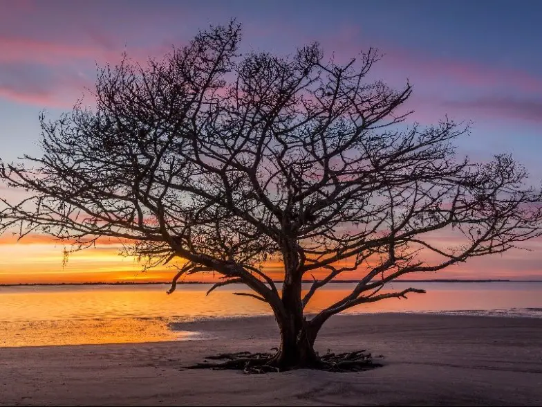 Este es el dosel de un bosque de magnolias y robles vivos en una de las islas de barrera de Georgia que tiene un suelo de bosque mayormente de palmeras y robles. Un destino principal en Georgia , Jekyll Island abarca solo 5,700 acres, lo que la convierte en la isla de barrera más pequeña del estado. Se han desarrollado partes de la isla, pero otras partes siguen siendo maravillosamente salvajes. En el lado oeste de la isla, encontrarás Jekyll Creek y un pantano salado, mientras que la parte este de la isla tiene una playa que toca el Océano Atlántico. Jekyll Island también alberga el Centro de tortugas marinas de Georgia, que ofrece recorridos para los visitantes y realiza investigaciones sobre la población de tortugas en peligro de extinción.