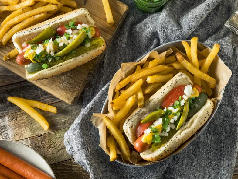 Además de la pizza de plato hondo, también es fundamental que pruebe un hot dog al estilo de Chicago cuando esté en la ciudad por un par de días. Los perritos calientes de Chicago se cubren con mostaza, pero nunca con ketchup, así como con cebollas picadas, salsa de pepinillos, rodajas de tomate, pimientos deportivos en escabeche y sal de apio. Los mejores lugares para perros calientes incluyen Hot Doug's en el norte de California, Redhot Ranch en Western Avenue y Byron's Hot Dogs en Lawrence. Si no come carne, puede encontrar hot dogs aptos para vegetarianos en Chicago en Kim & Carlo's Hot Dog Stand en el Museum Campus o America's Dog en Randolph Street.