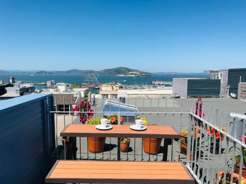 Un excelente alquiler de vacaciones en San Francisco , este Airbnb está a solo un par de cuadras de Fisherman's Wharf, Pier 39 y Ghirardelli Square, lo que brinda el lugar perfecto para aquellos que desean explorar en dos pies (muy recomendado en esta ciudad) o tomar el Teleférico. Si conduce, hay estacionamiento en garaje disponible por $ 25 por día. Lo más destacado de una estadía aquí, además de la ubicación, es la impresionante vista panorámica de la bahía, Alcatraz y Russian Hill and Park. También obtendrá muchos extras, incluida una cocina equipada con alimentos básicos para el desayuno. Incluso puede ser recibido con unas cervezas gratis para disfrutar en la terraza.