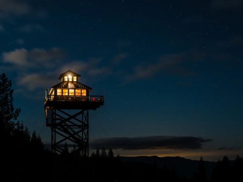 Este Airbnb es extremadamente único, ubicado en un mirador en el Bosque Nacional Umpqua de Oregón, elevándose 40 pies del suelo para acercar hasta cuatro invitados a las estrellas. Fuera de la red, tiene un pequeño sistema de electricidad alimentado por energía solar y agua de manantial, proporcionando el mejor lugar lejos de la civilización para observar las estrellas fugaces.