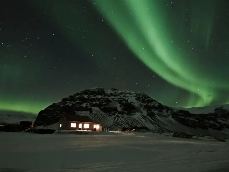 Ubicada en la pequeña ciudad sureña de Hvolsvollur, esta antigua casa de campo de estilo islandés tiene capacidad para seis personas y cuenta con una magnífica vista de la costa sur y las montañas. También ofrece algunas de las mejores oportunidades para observar las estrellas y uno de los mejores Airbnbs para ver la aurora boreal , que normalmente puede aparecer entre finales de septiembre y marzo.