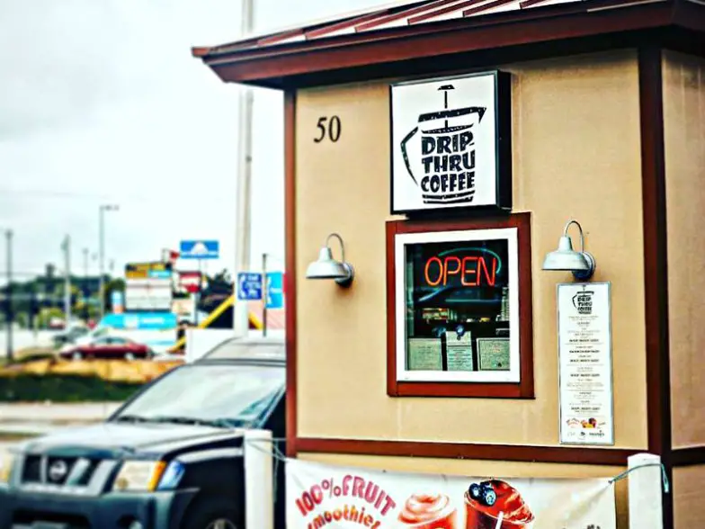 Drip Thru Coffee reside humildemente en el estacionamiento de un centro comercial de Stockbridge, Georgia, en las afueras de Atlanta. Inspirado en las chozas de café del noroeste, Drip Thru es un sitio inusual en el sur. El edificio del tamaño de una pinta está inteligentemente estructurado para adaptarse tanto a los conductores como a los clientes a pie a través de dos ventanas corredizas. La sostenibilidad es un enfoque clave refrescante para los propietarios, que utilizan recipientes compostables y reutilizables, café tostado localmente de cultivadores de comercio justo y café descafeinado suizo sin productos químicos. También han abierto una nueva ubicación en College Park.