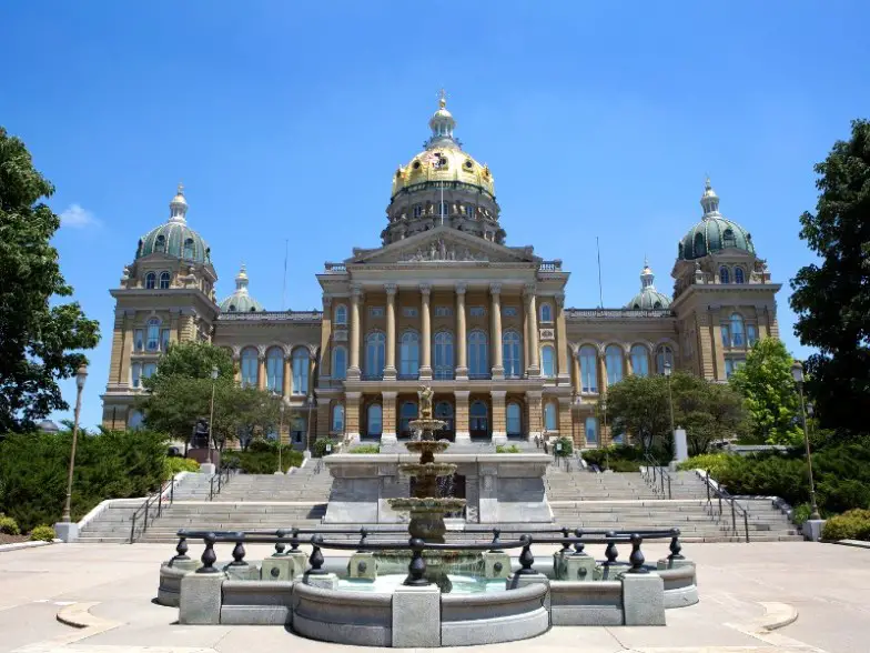 Además, mientras esté en Des Moines, planee hacer un recorrido gratuito por el edificio del capitolio y los terrenos. Estos recorridos duran aproximadamente una hora y describen la historia del edificio, su impresionante arquitectura y su papel en la ciudad moderna de hoy. Hay muchas obras de arte y diseños tallados a mano dentro del edificio del capitolio, que es donde está la oficina del gobernador de Iowa y donde se reúnen la Cámara de Representantes y el Senado de Iowa.