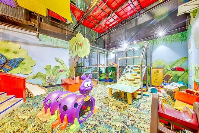 Conocido por su enorme roble con toboganes, este parque infantil ofrece un mundo de diversión familiar con su pizzería, sala de juegos y juguetes.