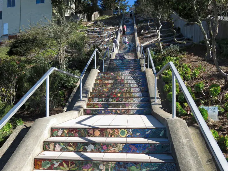 Dirígete a 16th y Morago y descubrirás los Mosaic Steps de 16th Avenue. Esta escalera diseñada por artistas locales y creada por más de 300 residentes del área, incluye 163 escalones empinados con hermosos mosaicos que representan un camino resplandeciente desde el mar hasta el cielo. Llevó dos años completarlo, y si lo miras desde abajo, puedes ver que la escalera realmente parece ser una "escalera al cielo". Los escalones conducen al Grand View Park, y desde allí puede disfrutar de una impresionante vista panorámica de la ciudad, el puente Golden Gate y más allá.