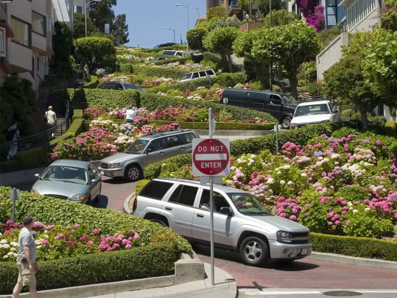 Lombard Street es un hito icónico en la ciudad y una de las cuadras más fotografiadas de todo el país, famosa por su empinada sección de una cuadra que contiene ocho curvas cerradas. Parecido a un tobogán de un parque infantil, está bordeado por coloridas flores florecientes y otras zonas verdes que lo convierten en todo un sitio para experimentar. Si bien el sinuoso camino de ladrillos rojos se experimenta mejor conduciendo hacia abajo, también puede tomar un teleférico que se detiene en la parte superior.