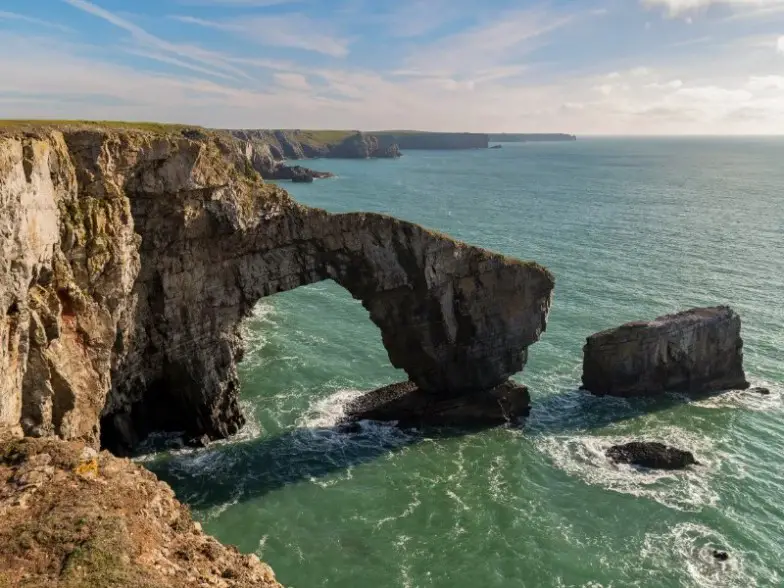A unas cuatro horas de Londres, Pembrokeshire alberga el único parque nacional costero del Reino Unido. El Parque Nacional de la Costa de Pembrokeshire ofrece prácticamente un sinfín de oportunidades para realizar paseos panorámicos junto con fabulosas playas, muchas de ellas con estatus de Bandera Azul. Esta región también alberga uno de los monumentos más famosos de Gales, un notable arco de roca natural conocido como el Puente Verde, que se eleva más de 82 pies y abarca más de 65 pies. También puede visitar el Castillo de Pembroke, un impresionante castillo medieval que fue el lugar de nacimiento de Enrique VII, el padre del infame Enrique VIII.