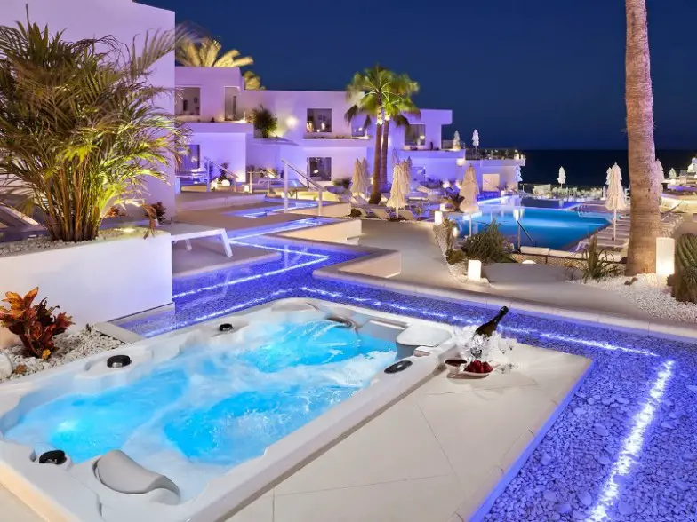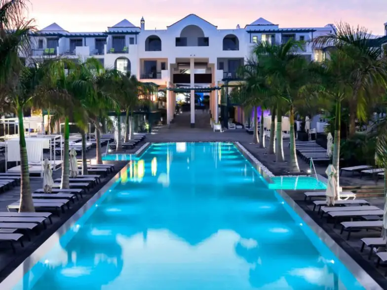 Este hotel solo para adultos en Lanzarote, en las Islas Canarias, se encuentra en el paseo marítimo de Costa Teguise. Una de las propiedades más elegantes de la zona, todas las habitaciones tienen puertas de vidrio de piso a techo que se abren a balcones, la mayoría con vistas al mar. Muchos también agregan una bañera de hidromasaje, ya sea en el interior o en el balcón. Los huéspedes pueden nadar en dos piscinas infinitas o simplemente relajarse, tomando un refrescante cóctel en una de las camas balinesas rodeadas de palmeras. Disfrute también de mimos en el U-Spa, que alberga un baño turco y una sauna.