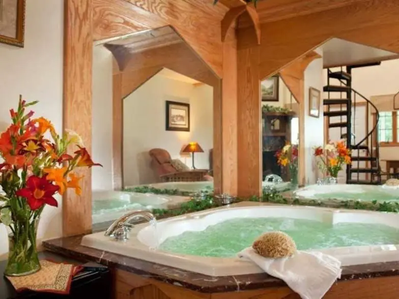 Ubicado en el corazón del país mohicano en el centro de Ohio, el castillo mohicano de Landoll es un hotel con temática de castillo con 15 suites que incluyen jacuzzis en la habitación, baños con calefacción por suelo radiante y minibar completamente surtido. La propiedad ofrece paquetes especiales para parejas que buscan romance, como servicios de spa creados por embajadores de experiencias personales, alquileres privados en la piscina y el complejo de fitness, y paquetes de regalo en la suite. Disfrute de una excelente cocina estadounidense en el Copper Mug Bar and Grille, que ofrece asientos en la terraza al aire libre durante los meses más cálidos del año. El complejo también ofrece eventos de asesinatos misteriosos y paseos de fantasmas con varios avistamientos de fantasmas que se han informado aquí.