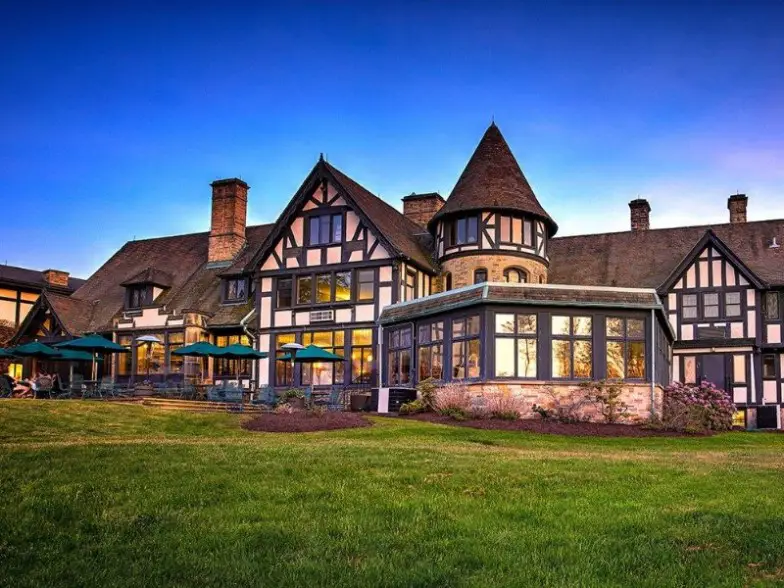 Punderson Manor State Park Lodge es una mansión de estilo Tudor ubicada dentro del Punderson State Park, que alberga el principal parque de deportes de invierno de Ohio, un campo de golf y un lago glacial de 150 acres. A poca distancia en automóvil de Amish Country, sus habitaciones y suites se encuentran en la casa solariega bellamente restaurada y cuentan con televisión por cable y reproductores de DVD. Reserve la suite Windsor y obtendrá una chimenea de gas, un jacuzzi y una sala de estar. En el Cherry Dining Room, disfrute de la cocina británica clásica como pescado y papas fritas o carne Wellington. También puede elegir especialidades regionales en la tienda de regalos como el jarabe de arce Pure Ohio y las palomitas de maíz de Harlow.