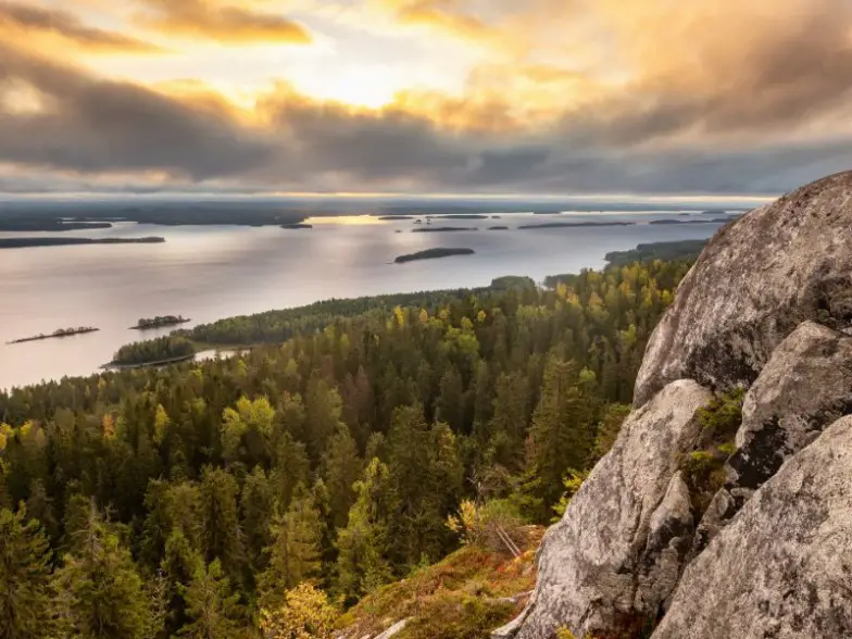 El Parque Nacional de Koli es un lugar bastante imaginativo. Se rumorea que los espíritus vagan por los antiguos acres del parque. Cuando comenzó el turismo, la gente colocaba monedas en una roca agrietada, que se dice que es un antiguo lugar de sacrificio. Hoy en día, no está permitido dejar nada, incluidas las monedas. Explore cuevas, enormes pendientes y uno de los valles más largos. En invierno, los huéspedes disfrutan del esquí y las motos de nieve.