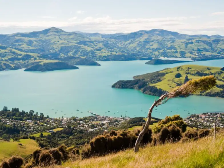 La histórica Akaroa se encuentra sobre un antiguo volcán, con sus antiguos muros que aún rodean el pueblo. Fue colonizado por los franceses en 1840 y todavía se pueden ver muchas influencias francesas en los negocios locales. El principal motivo de visita, sin embargo, es aprovechar los paseos disponibles con recorridos de diversa duración a los que se accede desde el mismo pueblo. Por su conexión con el mar, también es un gran lugar para disfrutar de deportes acuáticos y observar la vida marina como el delfín más pequeño del mundo, el delfín de Héctor y las ballenas.