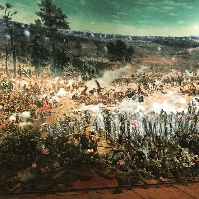 Supuestamente a petición suya, se cree que el rostro de Clark Gables se agregó entre los rostros de la pintura al óleo de la Guerra Civil. Originalmente pintando en 1886, la obra de arte panorámica se encuentra actualmente en proceso de restauración; quién sabe, tal vez aparezca otra cara de celebridad cuando se estrene nuevamente.