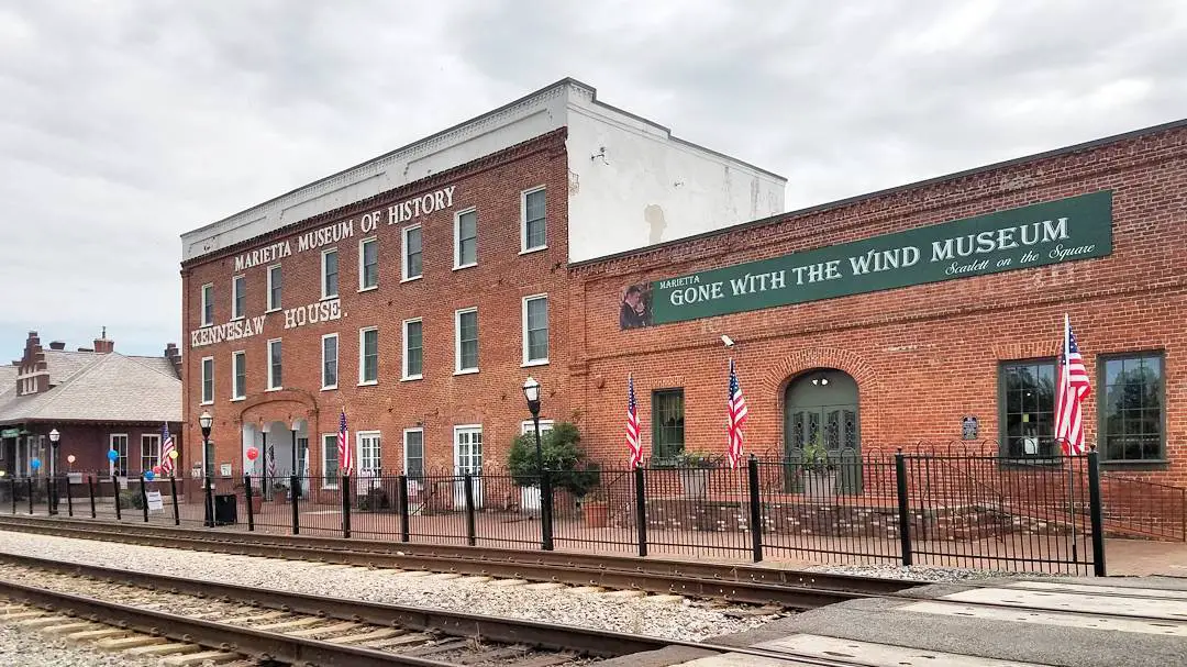 El Museo Lo que el viento se llevó está ubicado en la plaza histórica de Marietta, que por cierto es preciosa. En el interior encontrarás muchas piezas cinematográficas esenciales, como el vestido de luna de miel de Scarlett, carteles originales de películas y el guión real de Ona Munson.