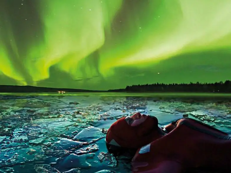 No es lo que imaginabas al ver la aurora boreal, esta salida lleva a los visitantes a aguas heladas, por supuesto, mientras usan un traje seco. Flota entre el terreno helado mientras contemplas los brillantes tonos verdes del cielo finlandés. Una bebida caliente le espera después de la carroza, y el transporte desde Rovaniemi está incluido.