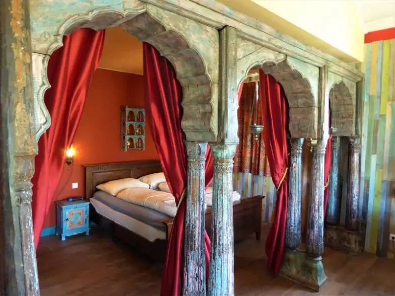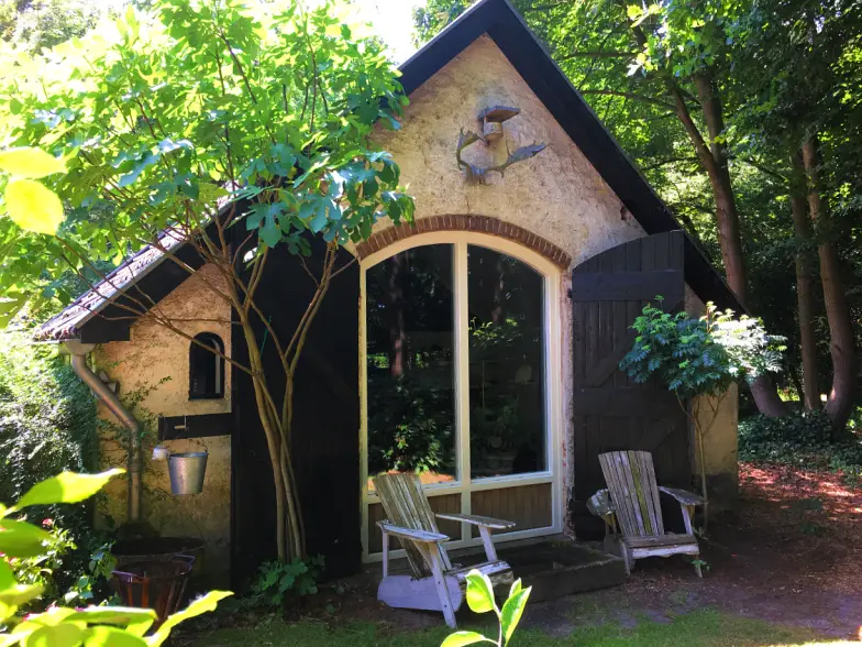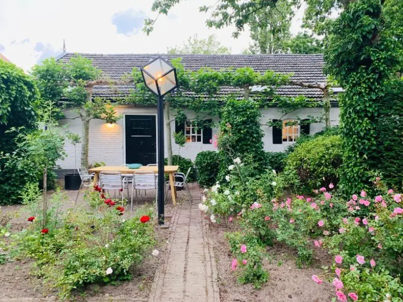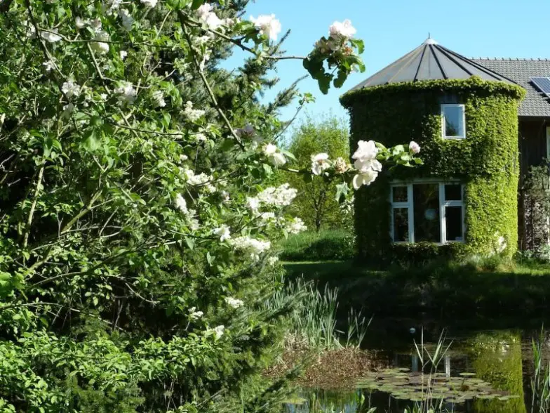 Las flores se alinean en el camino que conduce a la puerta de esta morada. Es una gran bienvenida. Sin embargo, el interior toma un giro un poco más contemporáneo, pero el tema es igualmente mágico. Maravíllate con los accesorios de iluminación inusuales y la decoración aerodinámica. Pero si quieres sentir ese ambiente caprichoso, solo sal.