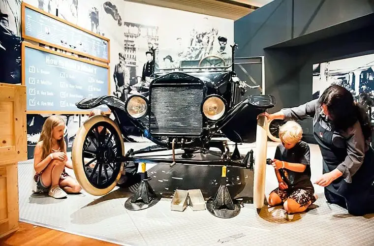 Para cosas que hacer para los niños en Michigan, deje que su hijo se inspire para ser creativo e innovador mientras observa cómo funcionan los motores de los trenes, aviones y automóviles. Podrán ver máquinas reales para cosechar cultivos o fabricar piezas de motores. Además, pueden subirse a los autos presidenciales anteriores o experimentar lo que es conducir un auto de carreras a través de pantallas interactivas de autos de carrera.