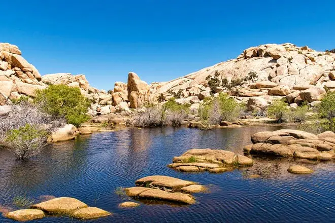 Barker Dam es otro lugar popular donde simplemente pasear ya es una actividad barata y divertida para la familia en Joshua Tree.