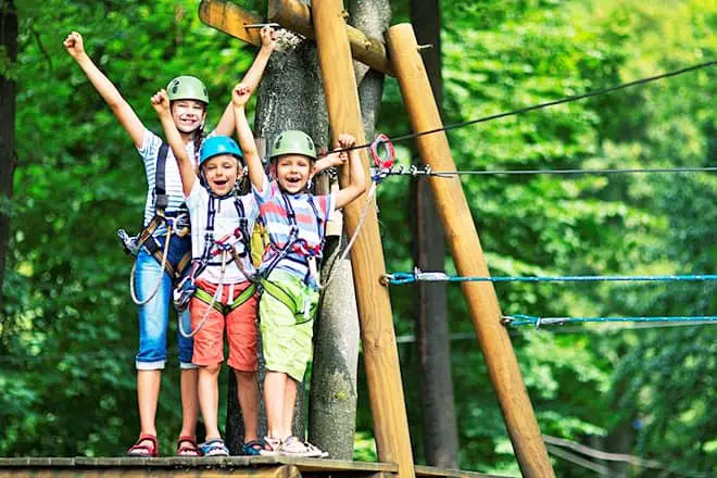 En Tahoe Treetop Adventure Parks, usted y sus hijos pueden disfrutar de varios cursos de cuerdas a través de los árboles. Otras actividades que pueden disfrutar haciendo juntos son tirolesa, cruzar puentes colgantes, disfrutar de las cautivadoras vistas desde lo alto de una plataforma de árboles y muchas más.
