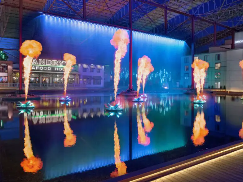 Hay una cubierta de tren al aire libre que se cierne sobre un lago en Union Station en Missouri. Si bien el sitio histórico tiene muchas atracciones, desde bares con cócteles con temas de trenes, un acuario hasta un viaje en el Polar Express de vacaciones, el espectáculo de luces y fuego es una malla espectacular de chorros, caídas y fuego que brota de figuritas de loto que flotan en el agua. —y es gratis. Puedes ver el espectáculo todas las noches de 5 a 9 p.m.
