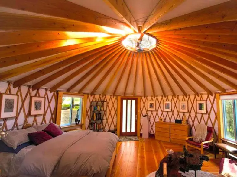Una yurta proporciona una forma de acampar, sin tener que dormir en el suelo. Encapsulado por una sólida estructura redonda, los huéspedes pueden relajarse en una cama real y calentarse junto al fuego. ¡Esta estructura en particular está conectada a una cocina y un baño! ¡Vaya baños! Ubicado justo al pie de las montañas de Sierra Nevada, las vistas y el entorno son exactamente lo que muchos esperan encontrar cuando se aventuran en unas vacaciones glamping.