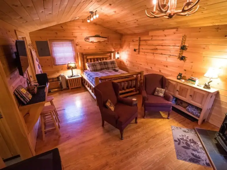Las cabañas acogedoras abundan en New Hampshire, incluida esta para dos personas. Esta es una cabaña de un dormitorio y un baño justo al lado de la Ruta 16 en Jackson. Tiene una bañera de hidromasaje privada, una chimenea de gas, una cama acogedora y un entorno arbolado privado. Cuando se hospede aquí, estará a solo cinco minutos de Jackson Village, Wildcat Mountain, Mt. Washington y Glenn Falls. Las ventajas para los huéspedes incluyen una cocina surtida, parrilla de carbón al aire libre y fácil acceso a caminatas. Necesitará una aprobación previa por escrito para mascotas o invitados adicionales. El anfitrión también tiene otras cabañas en el área que puedes consultar en Airbnb si esta está reservada.