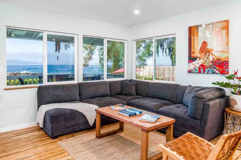 Ubicada junto a un santuario marino privado, esta casa de tres habitaciones para seis personas ofrece una tranquila porción de paraíso en la costa norte. Podrás salir por la puerta para disfrutar del buceo y el esnórquel de clase mundial . En el lanai, comience el día observando las ballenas que pasan en el invierno y, para un gran final, beba cócteles al atardecer mientras contempla los deslumbrantes colores que salpican el mar y el cielo. También hay vistas al mar desde muchos puntos de vista en el interior, incluidos dos dormitorios, la cocina y la sala de estar.
