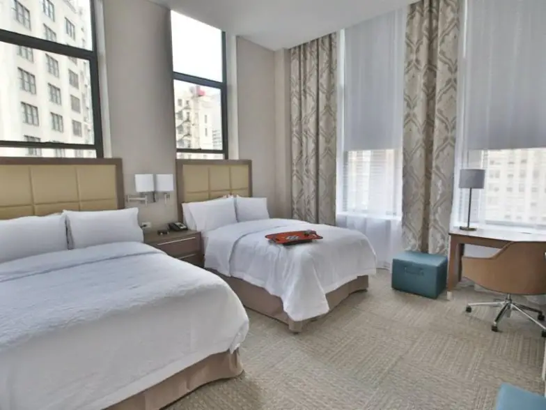 Este hotel de Chicago ofrece amplias suites de dos dormitorios para familias y desayuno de cortesía. Está ubicado en State Street entre las calles Ontario y Ohio, tiene un gimnasio y está a una cuadra del tranvía gratuito de Navy Pier. Las habitaciones también incluyen mini-refrigeradores, microondas, cafeteras y Wi-Fi. Para las familias, el hotel ofrece menú de restaurante para niños, tronas, cunas y paquete familiar. Embassy Suites ofrece una recepción nocturna de cortesía con bebidas y refrigerios, y hay una pizzería informal en el lugar que es una de las favoritas entre los niños. El paquete de diversión familiar incluye Wi-Fi premium además de un delicioso desayuno para comenzar su día de exploración.