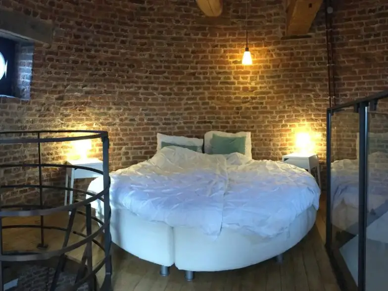 Ubicado en La Louviere, Bélgica, este antiguo molino de viento presenta una estética de estilo de fábrica que se ha mejorado aún más en todo su potencial. Gloriosos muros de ladrillo rodean tres pisos impresionantes, que incluyen una cocina, un baño y dormitorios. Incluso una sauna está disponible para su uso. Disfruta de los toques de historia en cada esquina.