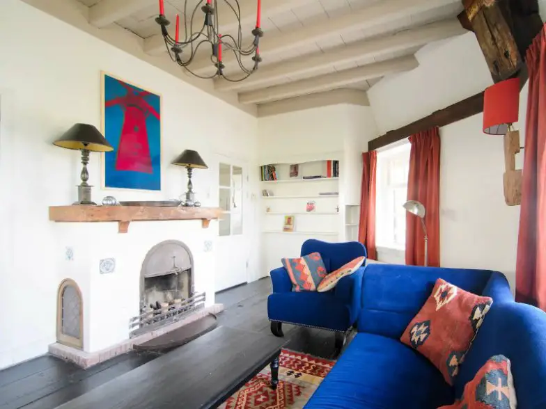 Otro molino de viento alemán Airbnb, la estructura de madera todavía tiene sus aspas icónicas, a diferencia de otros convertidos. El interior es tan acogedor con los muebles más detallados y muchos detalles en madera. Los toques de color aquí y allá se suman al encanto de los tres pisos. Una cocina, baño y dos dormitorios se encuentran entre los alojamientos.