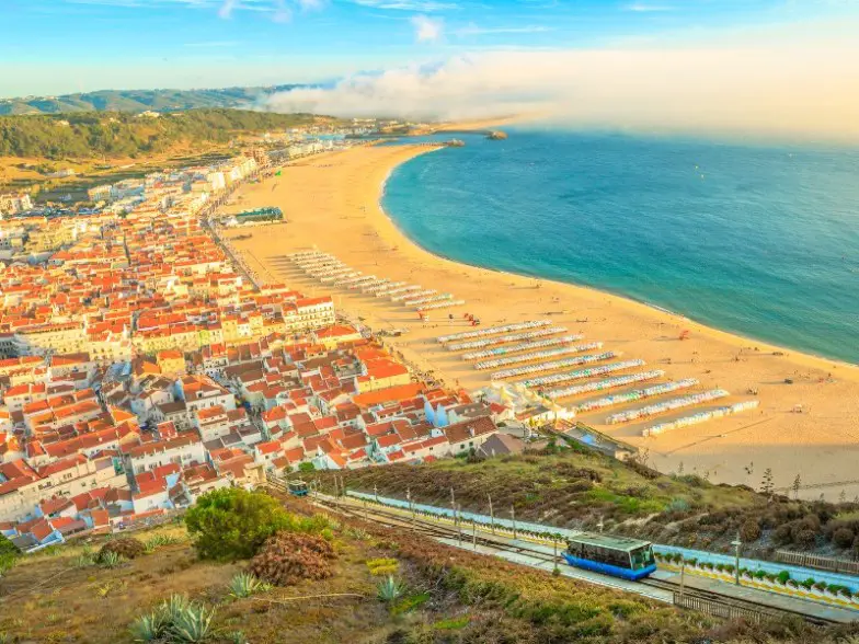 Hogar de algunas de las mejores playas de Portugal, Nazare impresiona con sus largas playas de arena y sus grandes olas. Esta escapada junto al mar es uno de los pueblos pesqueros más famosos del país, donde puedes sentarte en el acantilado y ver cómo los barcos de pesca con red más grandes de Portugal traen su captura diaria. Compre productos artesanales de los lugareños en la calle, deléitese con las delicias de los mariscos en los restaurantes locales o déjese cautivar por las olas de 78 pies que atraen a surfistas de todo el mundo.