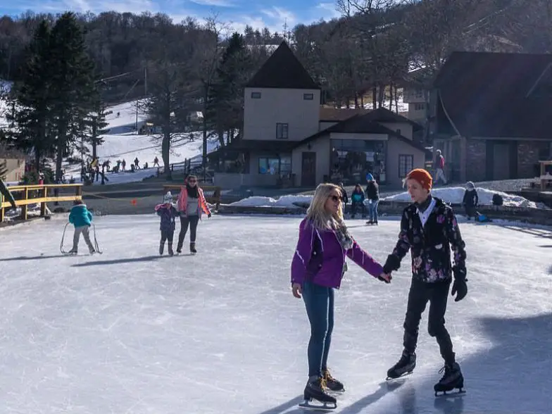 El centro del escenario en el acogedor Alpine Village de Beech Mountain Resort es la enorme pista de patinaje sobre hielo de 7000 pies cuadrados. Es un gran creador de humor y es completamente pintoresco con lindos edificios y pendientes en el fondo. Los fines de semana $15 te darán una sesión de dos horas con alquiler de patines. El fin de semana pagará $ 20, pero los niños menores de cuatro años siempre entran gratis con un adulto que paga.