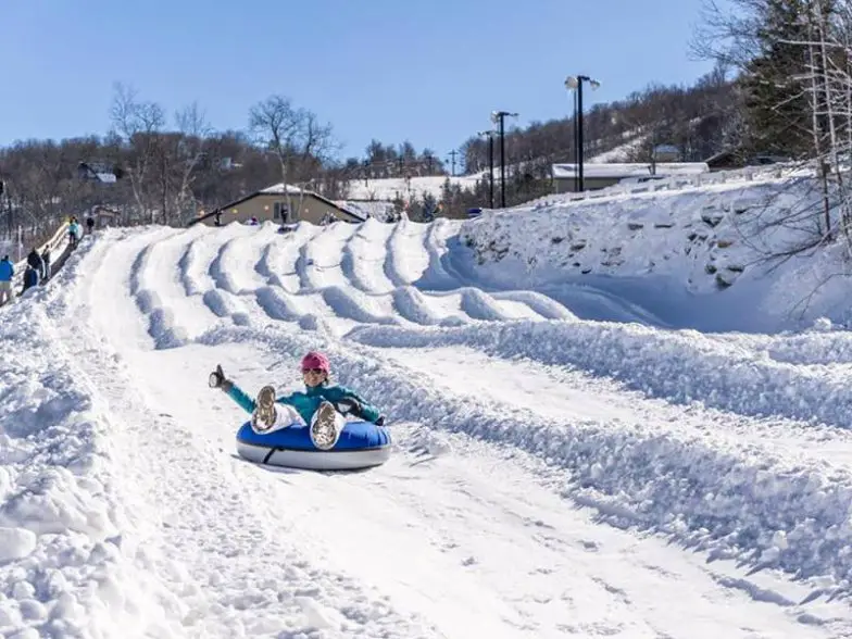 El tubing es un nivel superior al del trineo y está disponible para todas las edades. Los buscadores de emociones pueden volar por las colinas de 700 pies de largo y volver a subir sin esfuerzo a través de una cinta transportadora conocida como Magic Carpet. Las entradas salen a la venta dos horas antes de cada sesión y hay que comprarlas personalmente; pueden ir bastante rápido. Los boletos de lunes a viernes cuestan $ 27; los fines de semana le costarán $ 32.