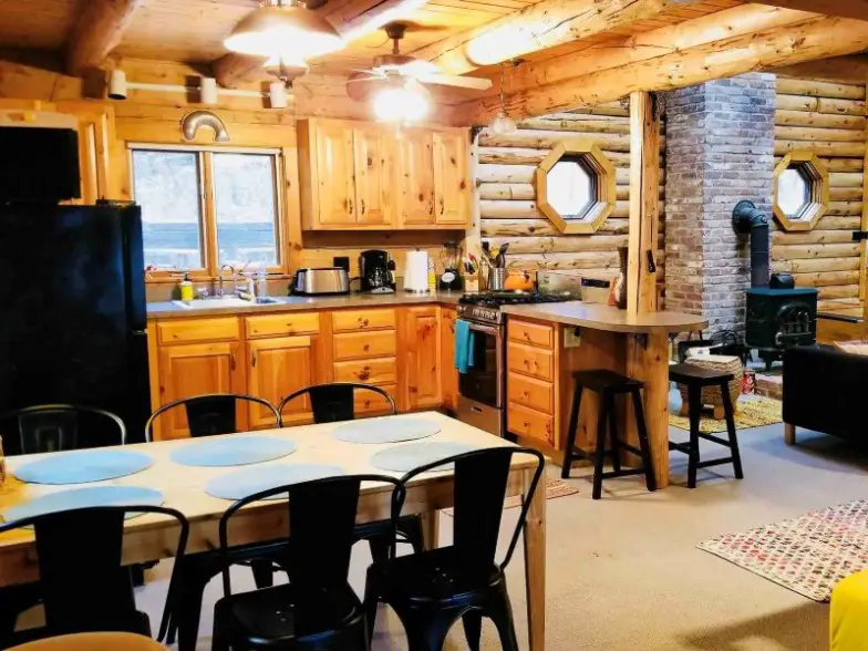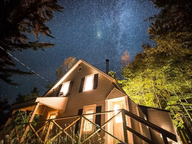 Si estaba soñando con esa experiencia de cabaña de troncos tradicional, esta es la lista para usted. La lujosa cama tamaño king se encuentra junto a la chimenea de piedra a leña. Los huéspedes pueden tener la mejor escapada romántica con su pareja. Ubicado justo en Salmon Hole Brook, el terreno circundante es nada menos que sereno. Aventúrate al parque nacional cercano para maravillarte con el esplendor que cambia de color.