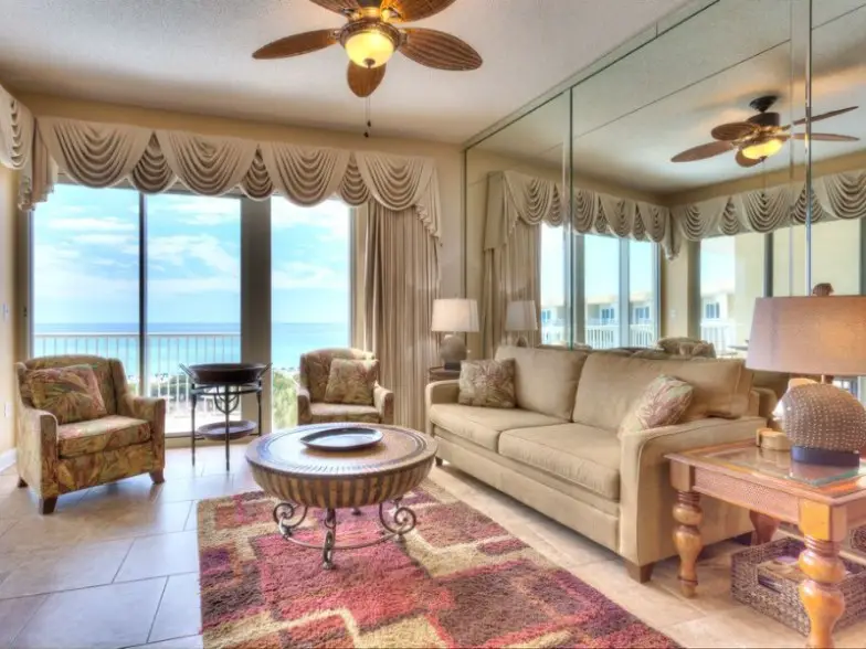 Hospédese en Miramar Beach con su familia en este condominio de 1,176 pies cuadrados con capacidad para seis personas en dos habitaciones y dos baños. Los niños son bienvenidos en este complejo de condominios orientado a la familia que se encuentra en la pintoresca autopista 98 ya poca distancia a pie del centro comercial Silver Shells Outlet. La propiedad es un complejo cerrado frente al mar con cuatro pisos y dos piscinas. Go-carts y motos acuáticas están cerca para el entretenimiento. Los huéspedes también tienen acceso a las lavadoras y al gimnasio.
