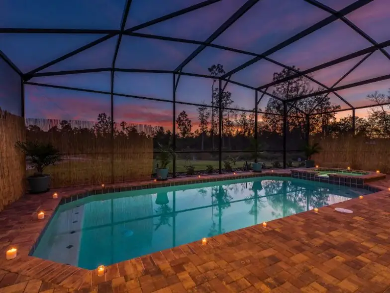 Hasta 22 personas pueden alojarse en esta enorme casa de ocho habitaciones y seis baños que es ideal para familias y está cerca de Disney World. Está frente a una piscina de agua salada y un jacuzzi, tiene una casa club con un río lento y una sala de juegos gratuita, y cuatro habitaciones para niños. Este Airbnb tiene habitaciones temáticas, cunas, literas, tronas, un cochecito, juguetes y juegos, y artículos de primera necesidad para bebés. ¡Es un lugar ideal para familias que buscan visitar Disney!