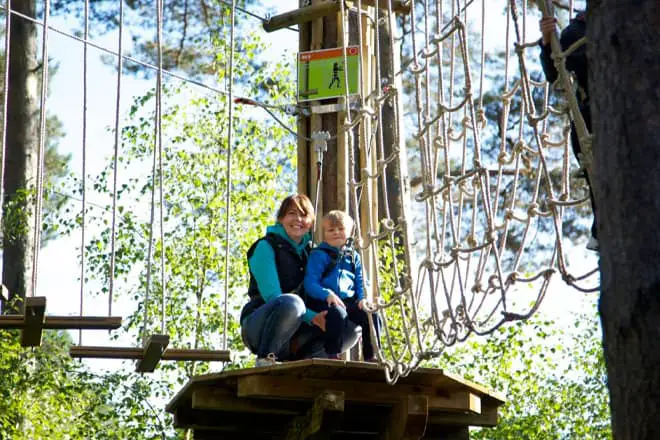 Treetop Adventure y el lanzamiento de hachas son para niños de 10 años en adelante, Monkey Drop es para niños de 5 años en adelante y Treetop Journey es para jóvenes de todas las edades. Go Ape es especialmente agradable para adolescentes y adultos jóvenes.