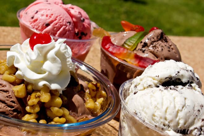 Hay sabores tradicionales y únicos disponibles, y además de solo helado, Woodside Farm también sirve batidos, pasteles de helado, tartas de helado y sándwiches de galleta con helado.