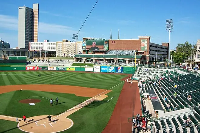 Lleve a los niños a un verdadero juego de béisbol en el estadio. Mire al equipo residente, Fort Wayne TinCaps, conectar jonrones.
