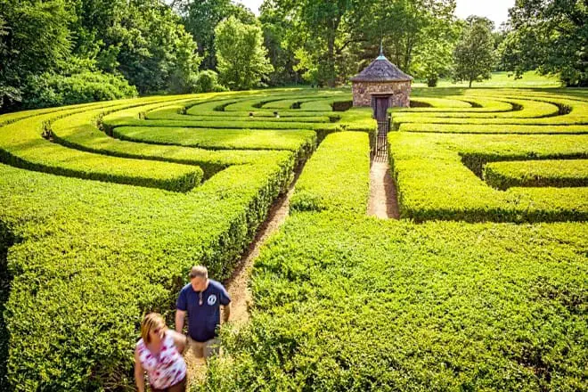 Originalmente diseñado como un espacio para la meditación por los fundadores alemanes de New Harmony, el laberinto que puedes visitar hoy es una recreación de 1939 basada en el diseño de 1814. Si crees que el laberinto es demasiado difícil de resolver, solo toma las puertas para tomar un atajo al templo en el medio.