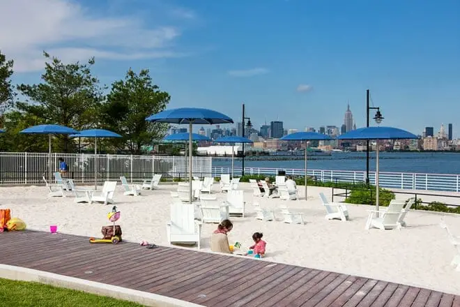 Mientras disfruta de las vistas del horizonte de Manhattan, los niños pueden disfrutar jugando en la arena que rodea el área. Así que no te olvides de llevar unos cubos para que se lo pasen en grande.