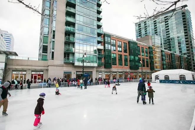 Patinar en esta pista de temporada es una de las mejores cosas que hacer en Jersey City con niños.