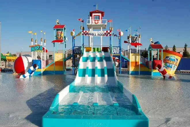 También hay un parque acuático donde los niños pueden tener una aventura húmeda y salvaje. Como beneficio adicional, hay lugares para hacer picnic y un sendero para caminar para mamás y papás que necesitan estirar las piernas.