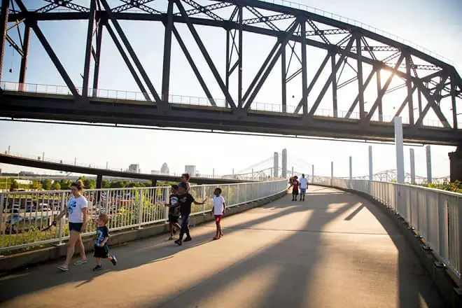 Algunas actividades divertidas para niños en Louisville, KY, que debe hacer es salir a correr o andar en bicicleta en este icónico puente. Un paseo de ida y vuelta solo toma unos 30 minutos, por lo que no es tan extenuante.