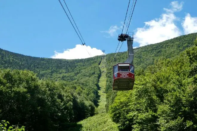 ¿Por qué no subir en teleférico a la cumbre de 4080 pies de la montaña Cannon? Las vistas son excepcionales y una vez que llegas a la cima puedes ver 4 estados y Canadá.