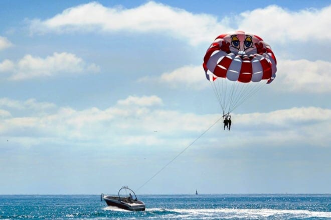 Para más emoción, pídale a su guía un par de chapuzones rápidos en el mar en pleno vuelo. El viaje en bote es de 90 minutos con unos 15 minutos en el aire.