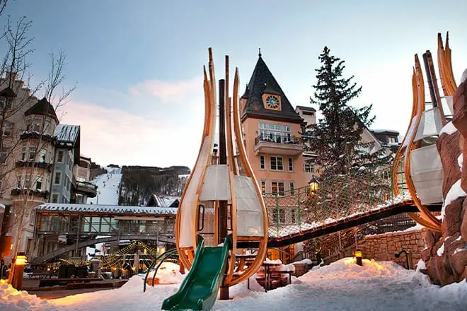 Vail también ilumina las estructuras del patio de juegos por la noche para que disfrute toda la familia.